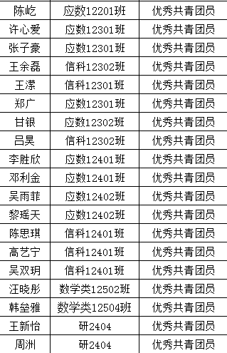 根据《关于开展2025年度武汉纺织大学共青团“五四评优”工作的通知》《武汉纺织大学共青团“五四评优”办法》(武纺大党发〔2023〕14号)精神,经个人申请、组织推荐评审、学院党委审核,2025年度武汉纺织大学共青团“五四评优”数学与统计学院各类别推荐名单予以公示,名单如下:
