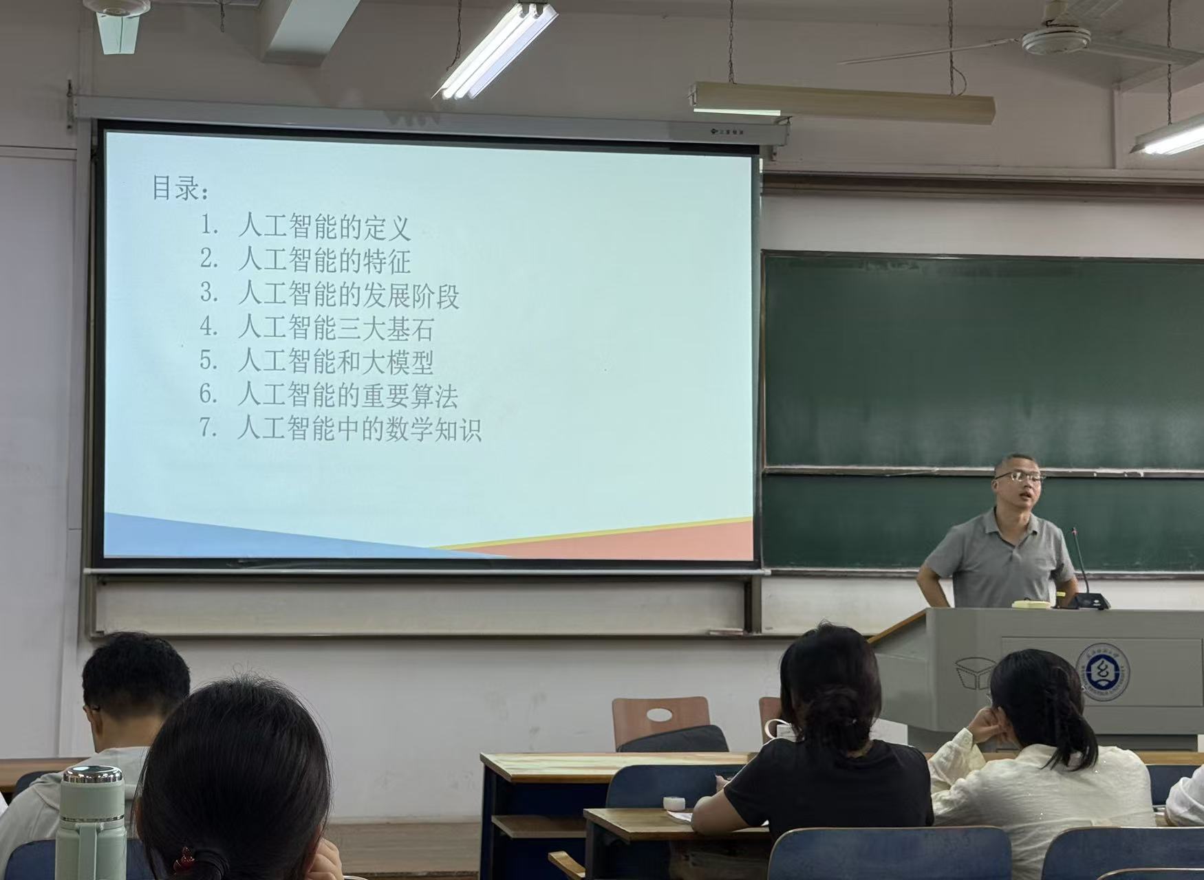 讲座伊始,江健老师以“AI的‘根’在数学”为切入点,生动阐释了数学作为人工智能技术基石的核心地位。他指出,从语音识别、图像分类到自动驾驶、大模型训练,看似复杂的AI应用背后,均离不开数学理论的支撑。讲座主要围绕人工智能的定义、特征、发展阶段等以及人工智能在当今社会的多方应用方面展开。