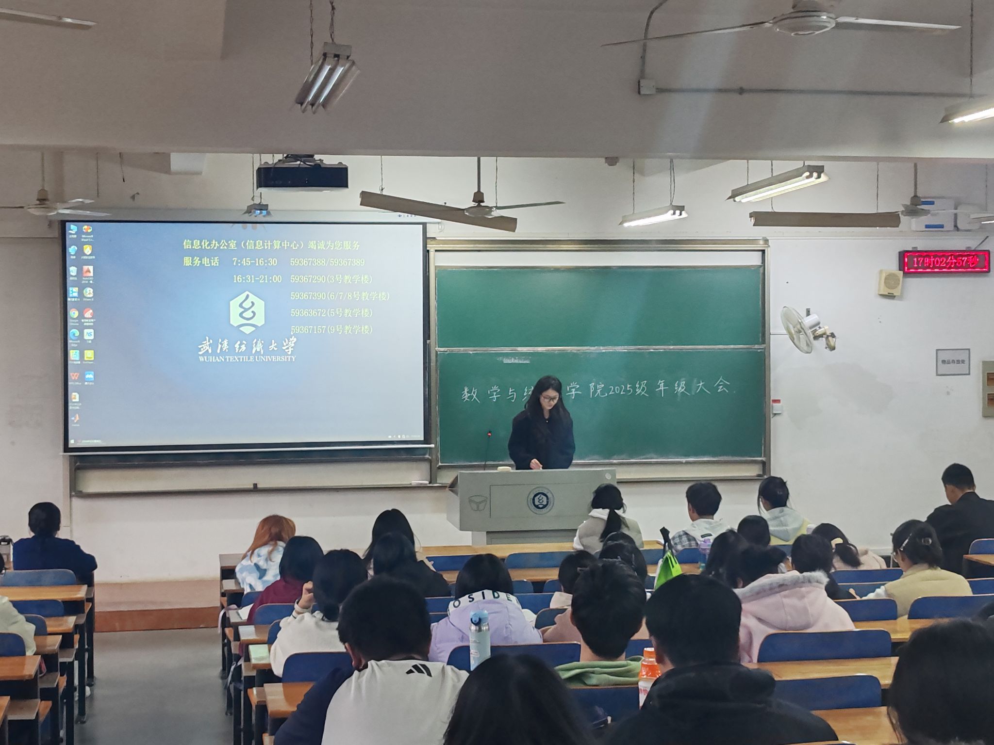 为整顿学风、强化纪律意识、共建平安和谐校园,2025年11月23日,数学与统计学院25级学生、辅导员曾琦在武汉纺织大学03-118教室隆重召开了本学期年级大会。本次大会由年级兼职辅导员孙海琴老师主持,全体同学参会。