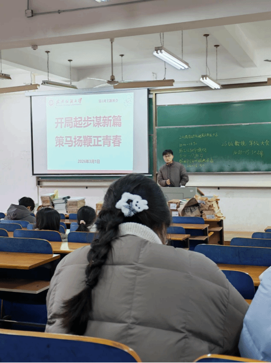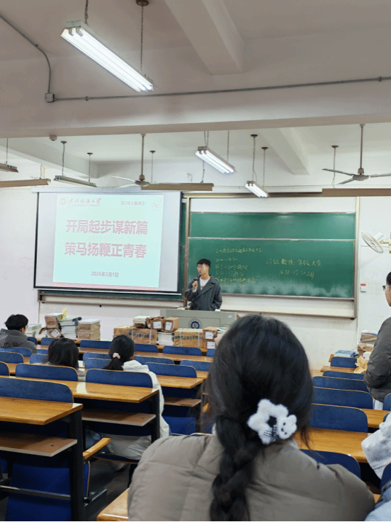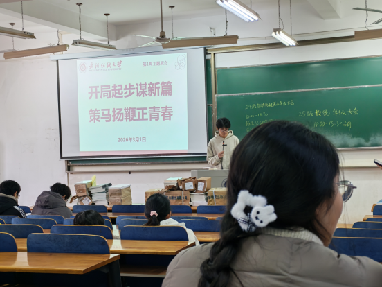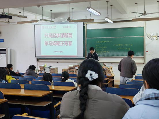 春归校园启新篇,笃行实干向未来。为帮助2025级学生快速调整状态、适应新学期学习生活,明确成长方向,2026年3月1日,武汉纺织大学数学与统计学院2025级于03-116室召开新学期年级大会。辅导员曾琦主持会议,全体2025级学生参会,围绕开学注意事项、安全保障、学业提升等核心内容展开交流,为新学期筑牢思想根基、夯实学习基础。
