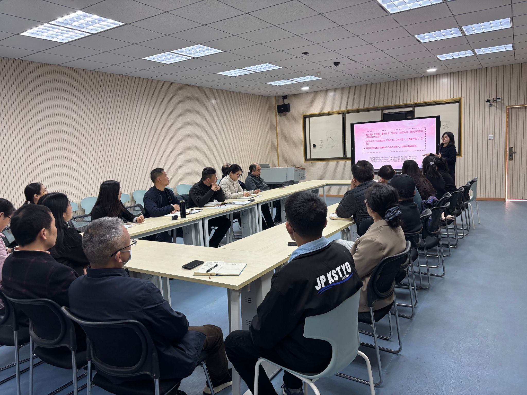 应数党支部肖梅霞同志领学《习近平谈治国理政》第五卷。她以《建设教育强国背景下高校数学教师的使命与担当》为题,深入解读了习近平总书记关于教育、科技、人才工作的重要论述,提出教育、科技、人才是现代化建设的基础性支撑,当今时代背景下数学作为基础学科的战略价值更加凸显,建设教育强国是高校数学教师的主要使命,结合自身岗位实际谈高校数学教师的行动方向。