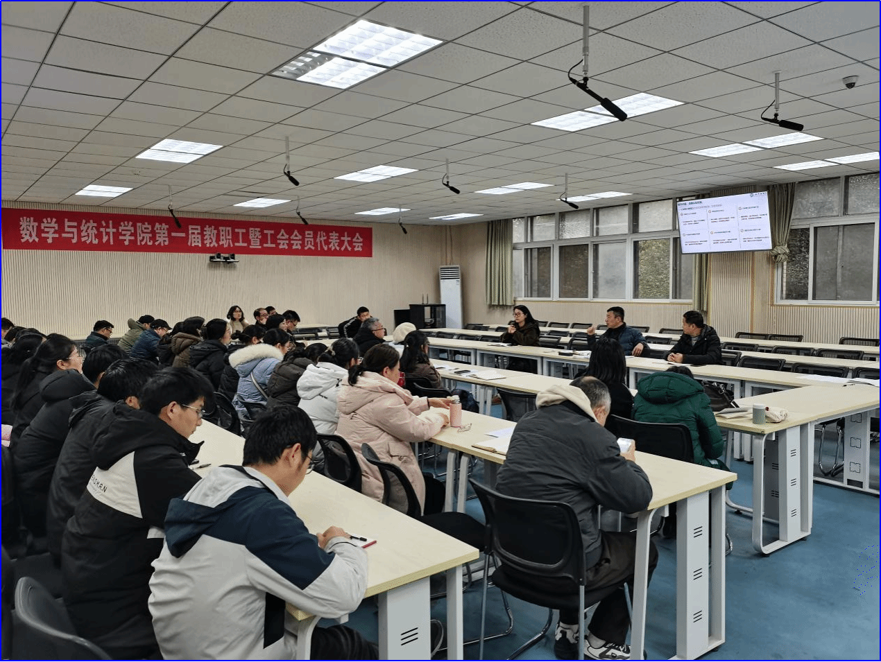 1月4日,数学与统计学院召开了第一届教职工暨工会会员代表大会,学院全体教职工与会,分工会主席周志刚主持。