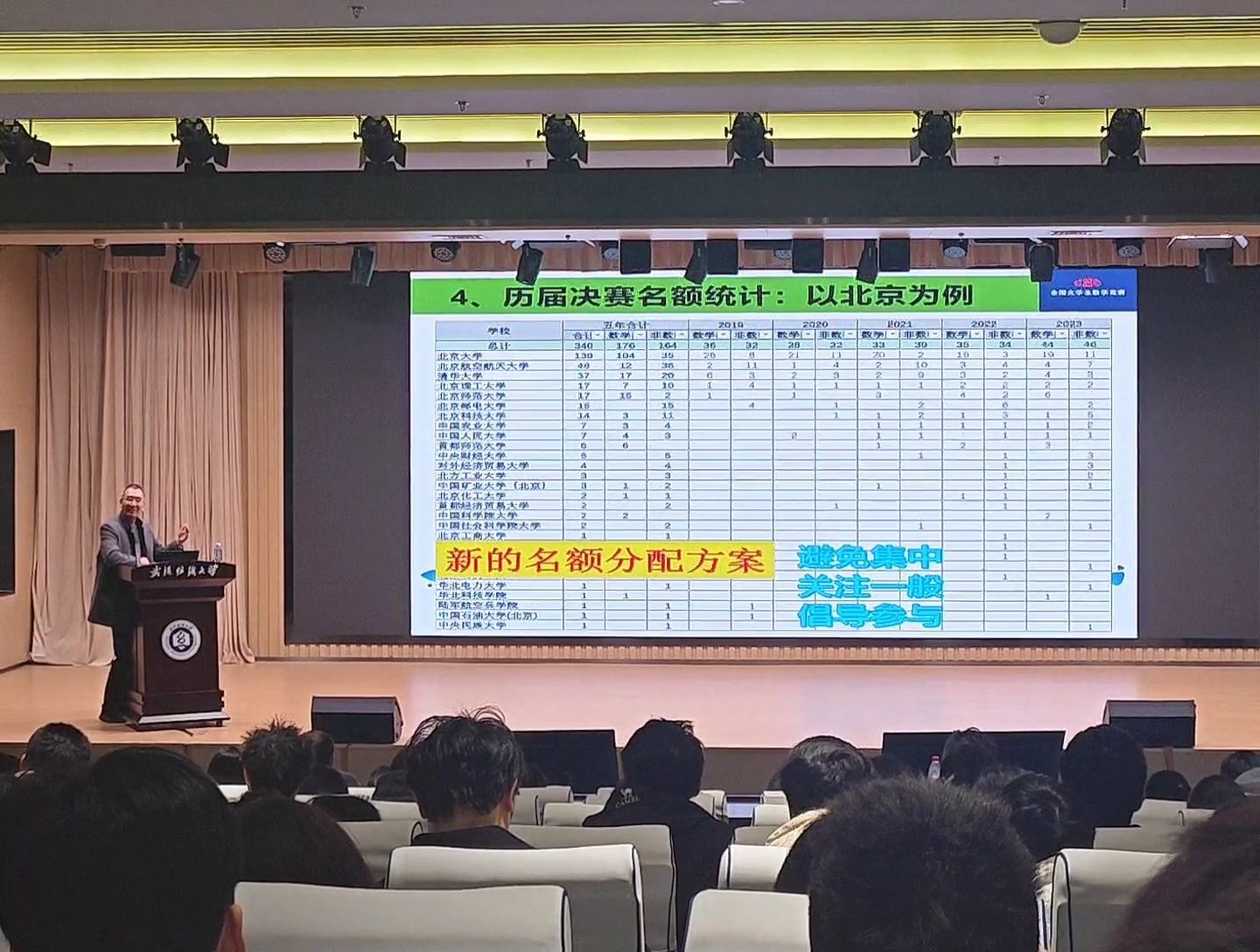 本次讲座不仅加深了师生对全国大学生数学竞赛的全面了解,更极大地激发了大家投身数学学习与科研探索的热情。佘教授的报告既有宏观视野,又有实操指导,为学院的学科竞赛工作指明了方向。