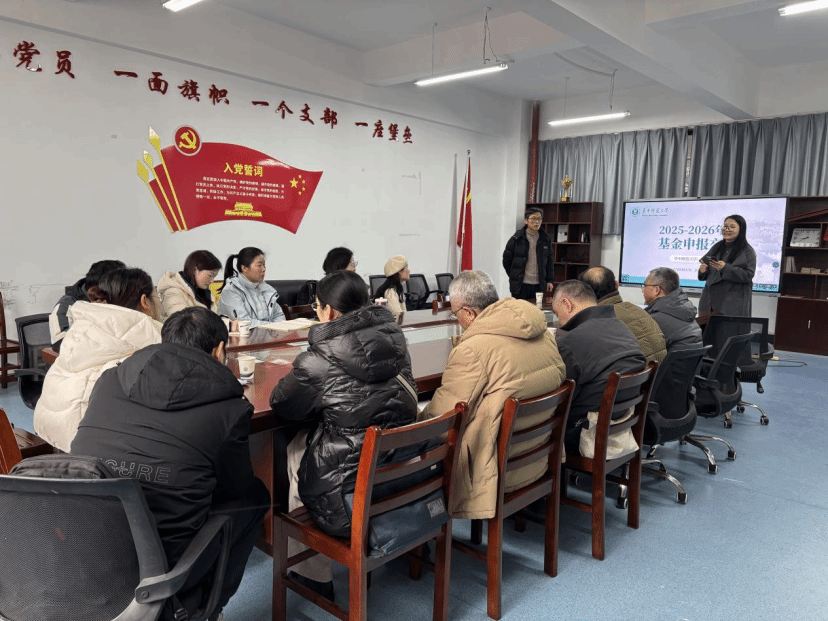 2025年12月31日上午9:30,武汉纺织大学第925期阳光论坛在YG04-102会议室顺利举行。本次论坛以《基金申报与学术成长之路》为主题,特邀华中师范大学数学与统计学院刘双乾教授担任主讲嘉宾,为广大教师带来一场内容充实、针对性强的国家自然科学基金申报辅导。论坛由数学与统计学院副院长郑仟教授主持,学院全体教师积极参会。